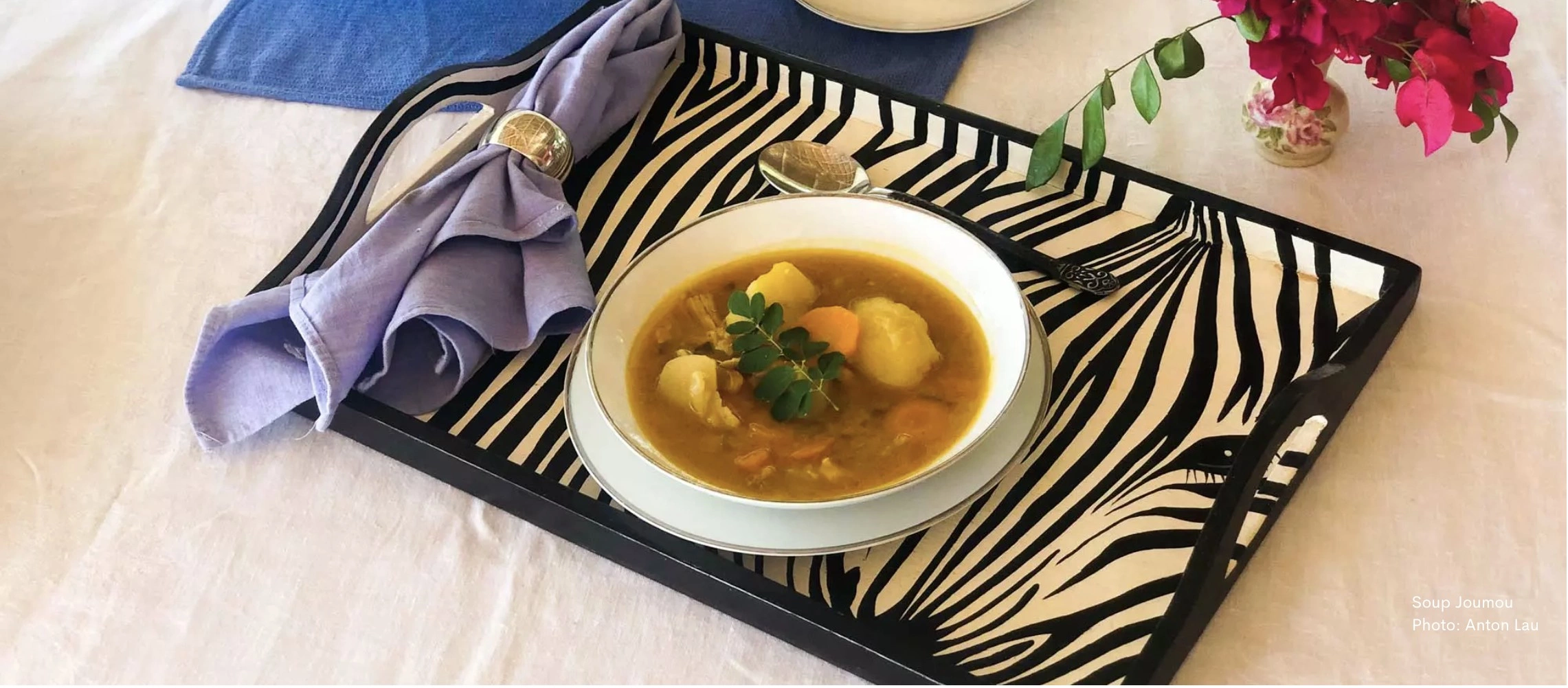 Когда вы откроете для себя гаитянскую кухню, мы уверены, вам захочется рассказать об этом всему миру! Фактически, у нас есть блюдо, которое ЮНЕСКО признает частью «Нематериального культурного наследия человечества». Блюдо, удостоившееся этой высокой чести, — не похожий ни на один другой суп — Суп Джоуму. Этот суп — настоящее удовольствие для вкусовых рецепторов, приготовленный из гираумона (тыквы-тюрбана), других овощей, клубней и мяса. Традиционно его едят в Новый год всей семьей, как американцы едят индейку на День Благодарения, но не стесняйтесь наслаждаться этим знаменитым супом в любое время года! Мы будем только рады.