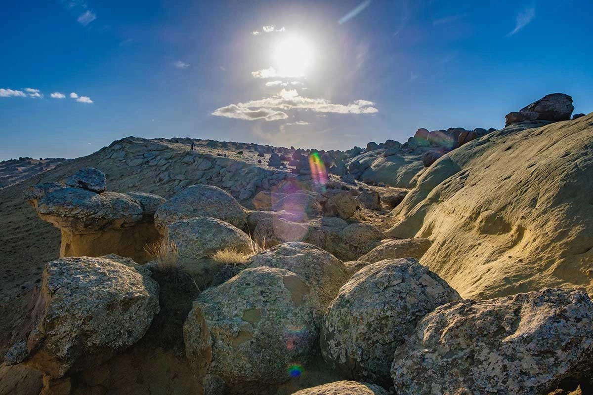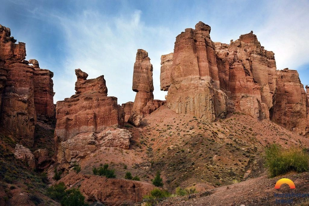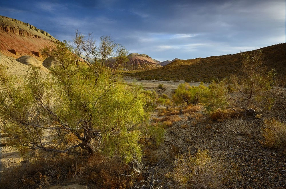 15. Урочище Киин-Кериш. Необычное по своей красоте урочище Киин-Кериш сочетает замысловатые красные, белые и желтые глиняные «строения». Издали яркие глиняные скалы и пропасти Киин-Кериша похожи на огненные языки пламени. Поэтому эти скалы называют «Пылающими». До сих пор туристы находят здесь останки древних позвоночных (носорогов, крокодилов, черепах). Внимание учёных привлекают и ныне живущие формы флоры и фауны, регулярно организуются научные экспедиции. Жаркий климат, доминирующий здесь, в сочетании с полным отсутствием воды создает фантастически живописную и мистическую атмосферу.