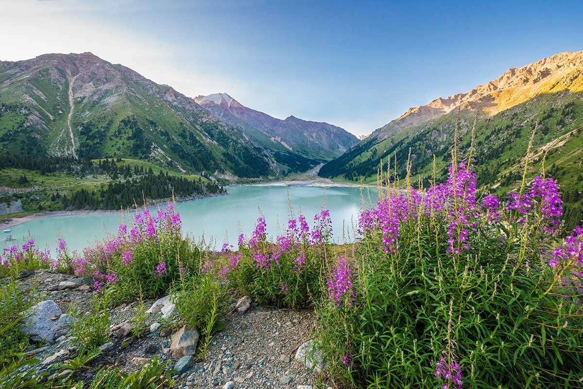 13. Другая достопримечательность Восточно-Казахстанской области, давно полюбившаяся путешественникам, – озеро Маркаколь. Озеро расположено на территории Маркакольского заповедника, между хребтами Азутау на юге и Курчумским на севере. Площадь 455 кв. км! В озеро впадают множество небольших рек и ручьёв, а вытекает всего одна – река Кальджир. Добраться до Маркаколя также непросто: большое расстояние, отсутствие хорошей дороги делают поездку к озеру настоящим приключением. Но оно того стоит! Вода в озере пресная, зеленовато-голубого цвета, чистая и очень мягкая. Прозрачность 4–7 метра. Здесь водится необычная рыба семейства лососевых – ускуч.