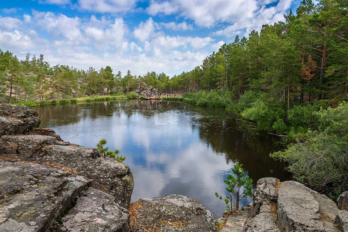 14. Таежные места Западного Алтая. Западно-Алтайский заповедник известен далеко за пределами Казахстана благодаря каменным останцам на вершинах гор на стыке трех главных хребтов района: Коксуйского, Ивановского и Холзуна. Место это называется «Каменная Сказка». На площади почти в 16 квадратных километра в районе вершины Сказка (2179 м) как стражи возвышаются гранитные останцы причудливой формы, достигающие порой высоты 35 метров! У многих из них есть свои имена: Богатыри, Смотрящий, Беседа старцев и другие. Помимо останцев своей неповторимостью привлекают внимание высокогорные Белоубинские озёра, самым красивым из них считается озеро Кедровое. Здесь, в межгорной котловине, расположено самое большое на Западном Алтае высокогорное болото Гульбище (шесть километров в длину и два в ширину) – место летнего обитания копытных животных: косули, марала, лося. Встреча с хозяином тайги тоже вполне возможна! В общем, фотосессия животного мира: и птиц и зверей, вам здесь обеспечена. Не менее интересны места для наблюдения за таежными жителями в этом регионе – это долина река Черная Уба, у подножия Ляминого белка. Здесь для туристов даже организованы смотровые площадки. С безопасного расстояния с высоты 3–4 метров можно наблюдать за лосями, маралами, косулями.