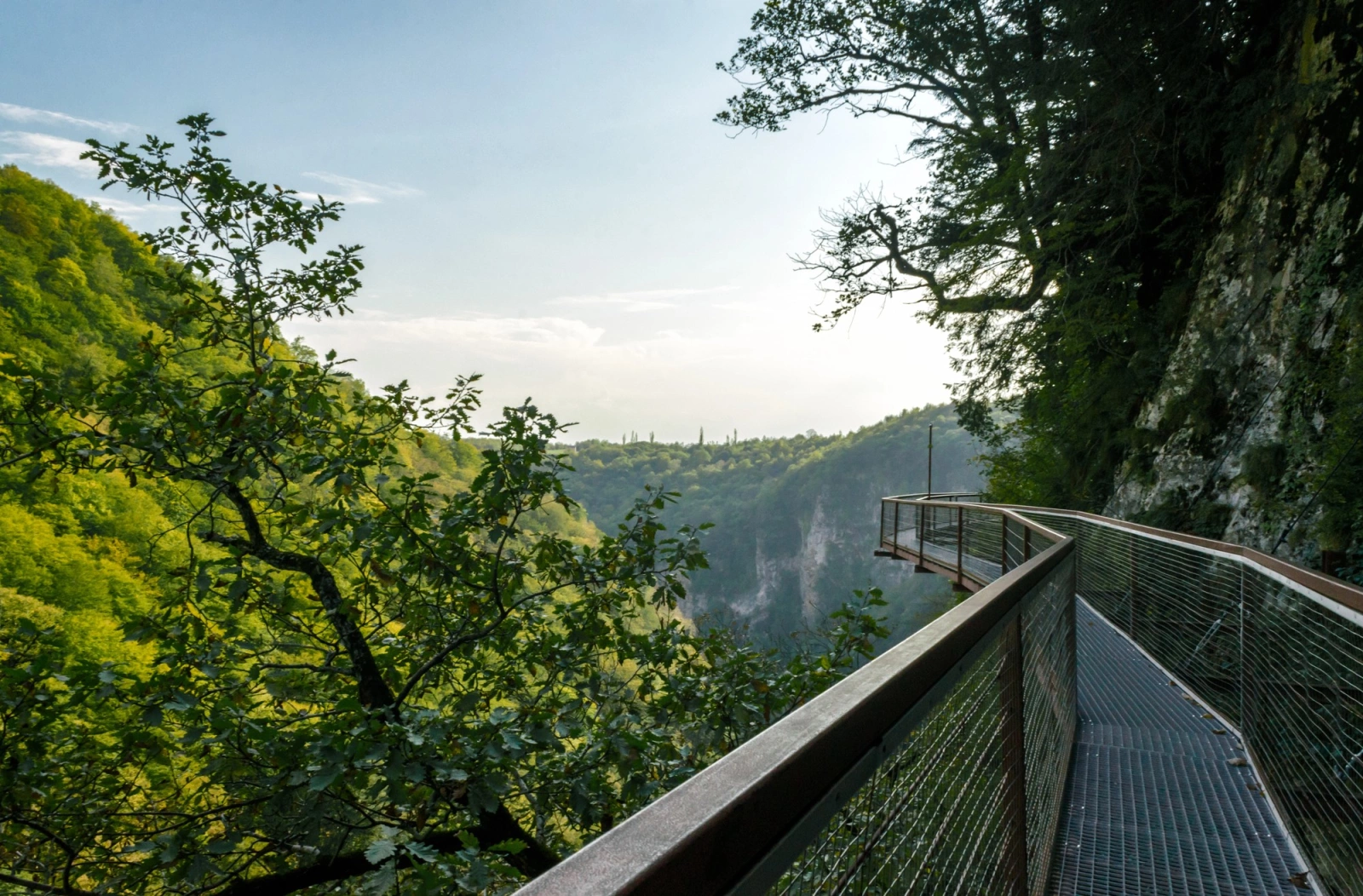 В западной Грузии, недалеко от города Кутаиси, находится Мартвильский каньон — место, которое заставляет забыть о времени. Здесь можно совершить лодочную прогулку по изумрудной реке, которая прорезает каньон, окружённый водопадами и утёсами. Это не просто красивое место, это настоящая природная галерея, созданная тысячелетиями эрозии. Вода здесь кажется фантастически чистой и свежей, а дикая природа вокруг — просто завораживающая.