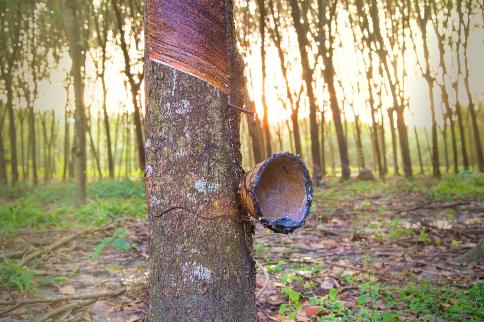 Через три часа появляется первый подсечённый ствол. Молочный сок застыл на коре, словно замёрзшие слёзы. Его больше никто не собирает.