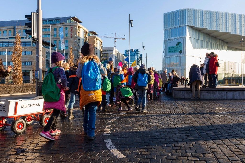 Как сделать так, чтобы в новую библиотеку захотели прийти дети? Ответ прост: привлечь их к процессу ее открытия! Именно поэтому на прошлой неделе в Осло состоялся детский книжный парад: около тысячи школьников промаршировали по улице Карла Юхана и перенесли из старого здания библиотеки в новое семь тысяч книг. Парад сопровождали конные всадники и оркестр, а у библиотеки юных читателей приветствовала кронпринцесса Норвегии Метте-Марит.