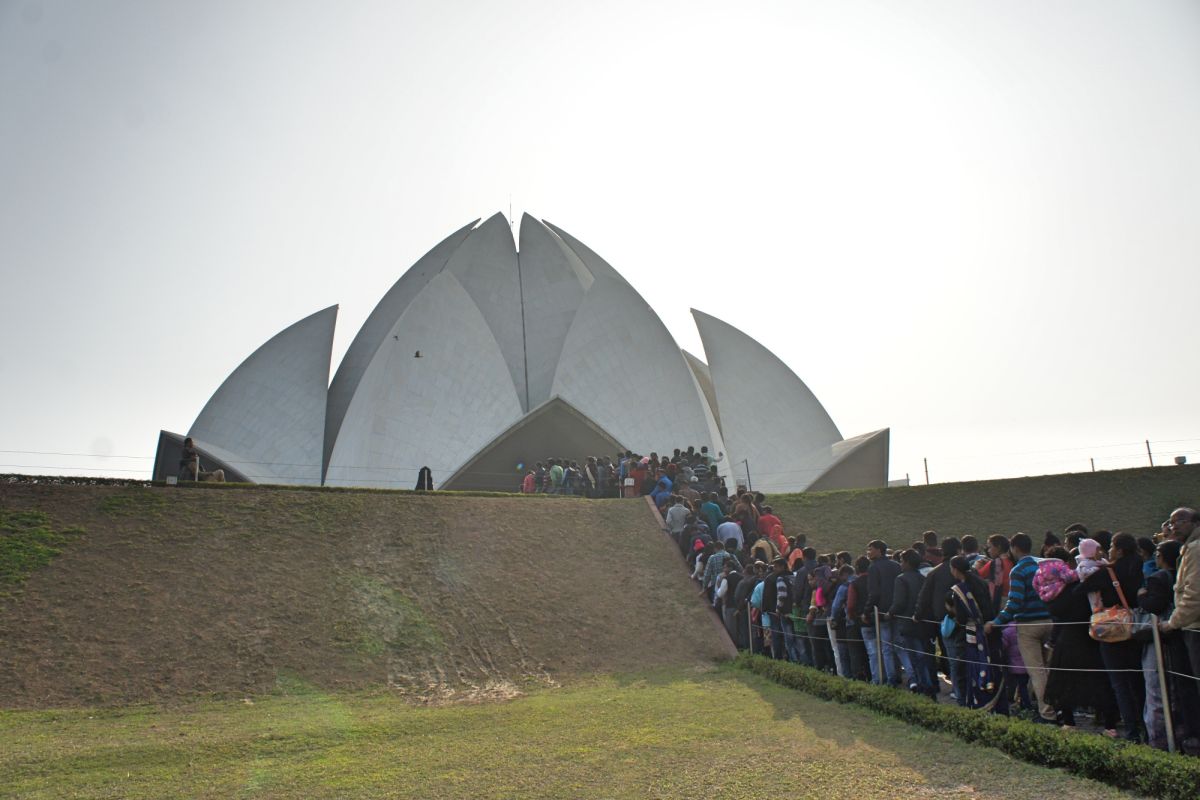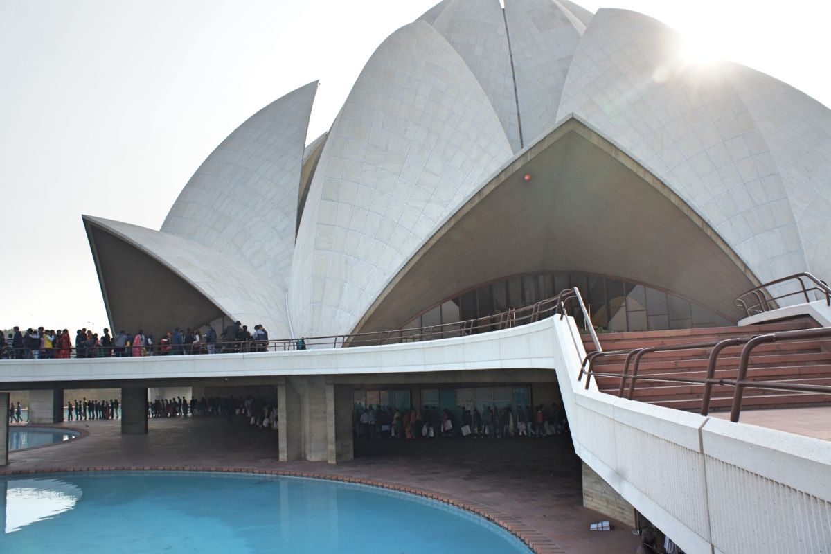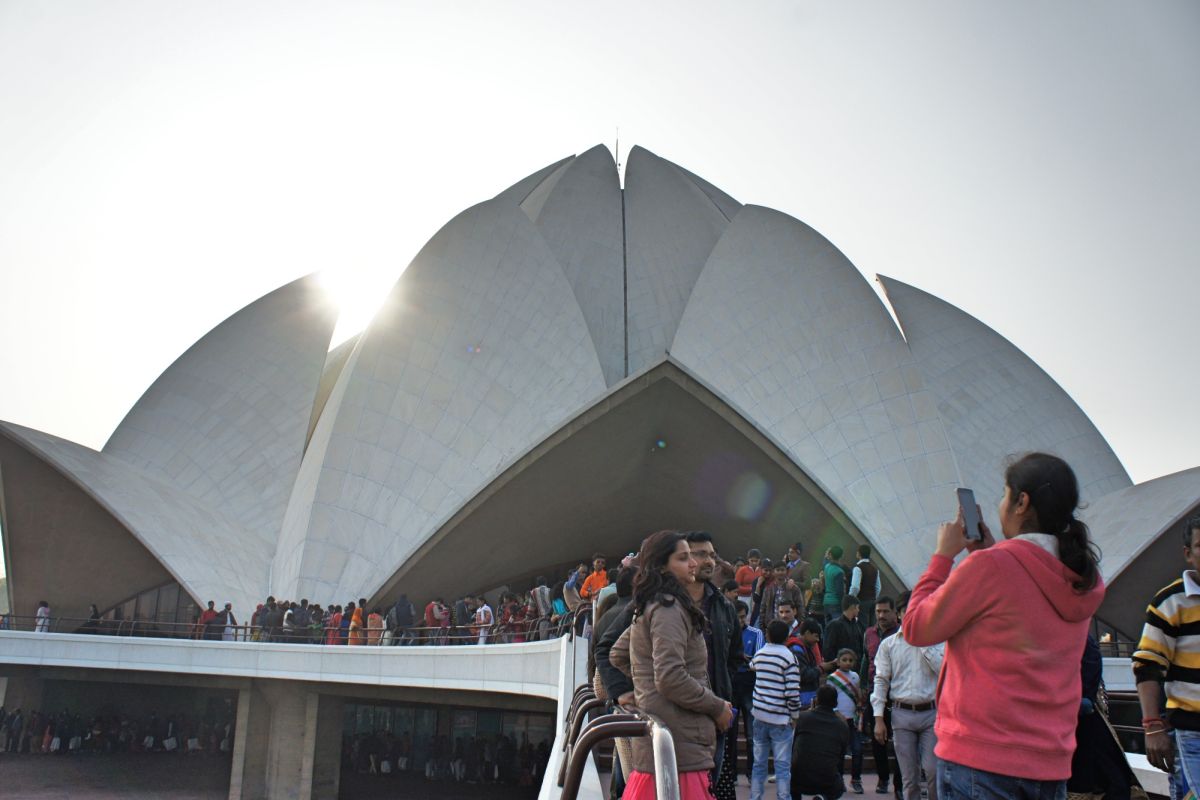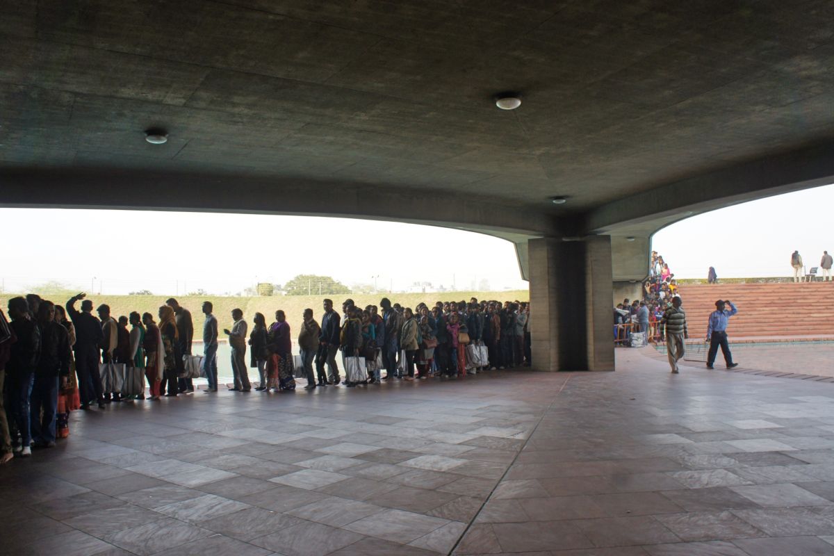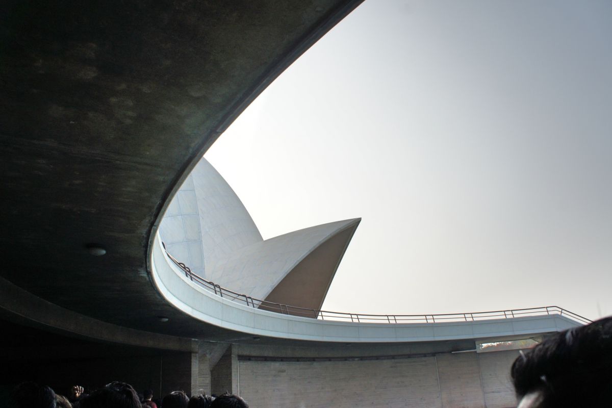 Я вижу сквозь дымку невероятный цветок - чудо инженерной мысли. Его гигантские белоснежные лепестки словно вот-вот раскроются навстречу солнцу нового дня, они почти сомкнуты, но в чуть разомкнувшийся вершине угадывается готовность приоткрыть великую тайну. А от самой цветоножки тянется бесконечной лианой очередь, собравшая как мне кажется пол Индостана чающих к этой тайне приобщиться.