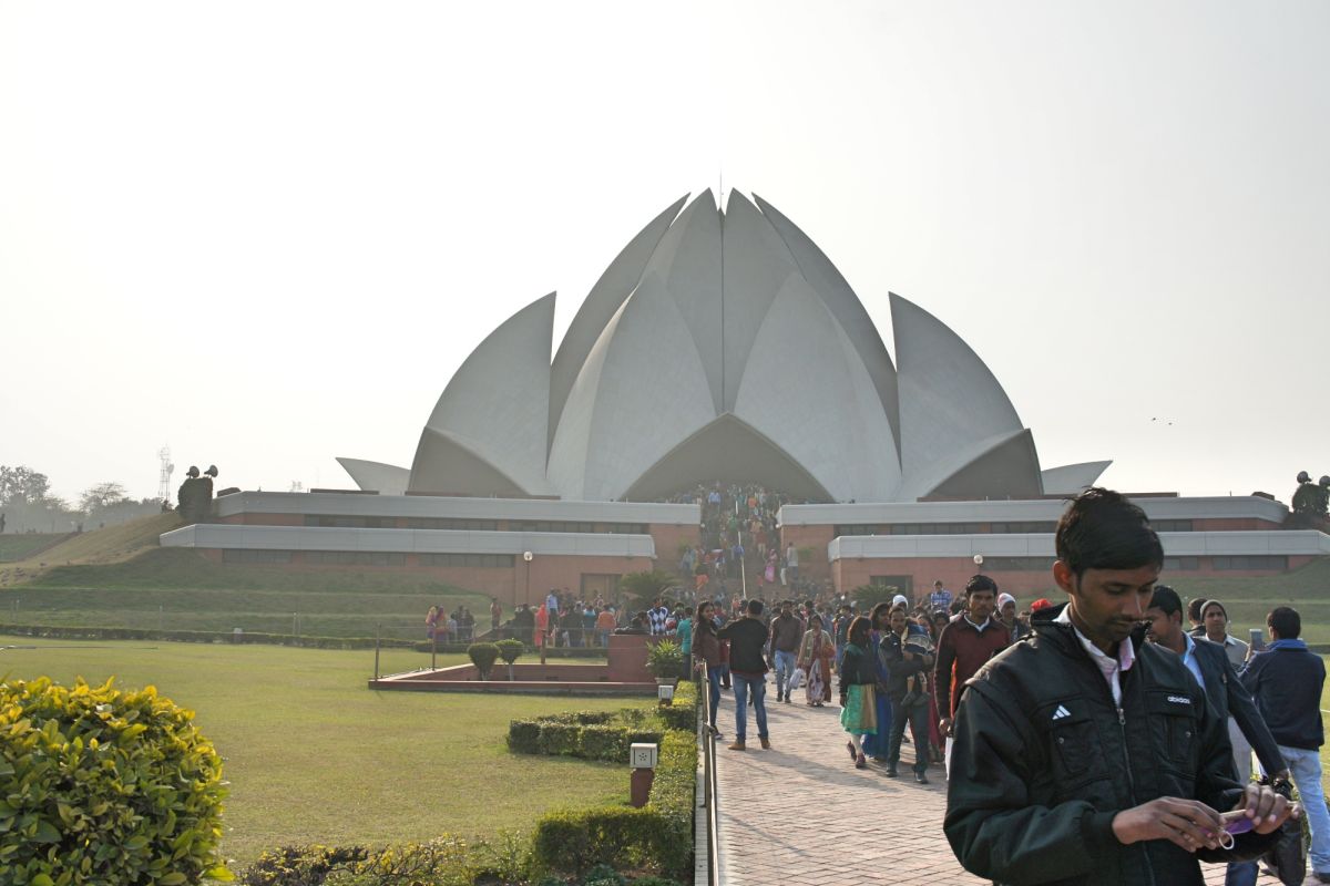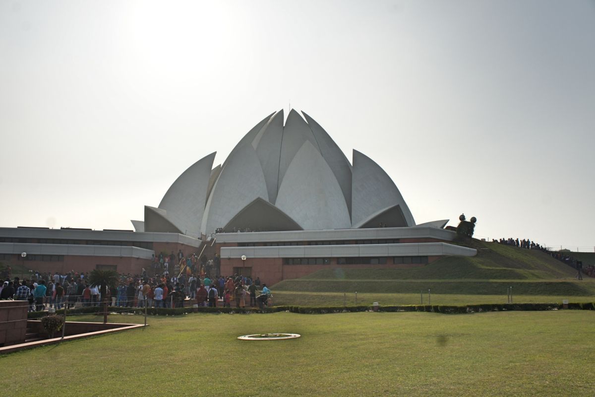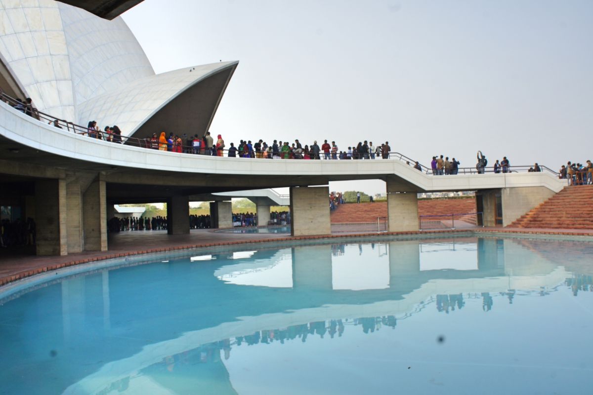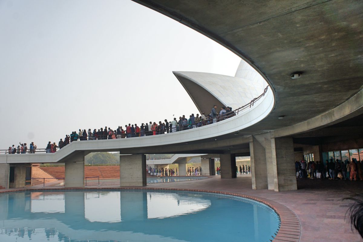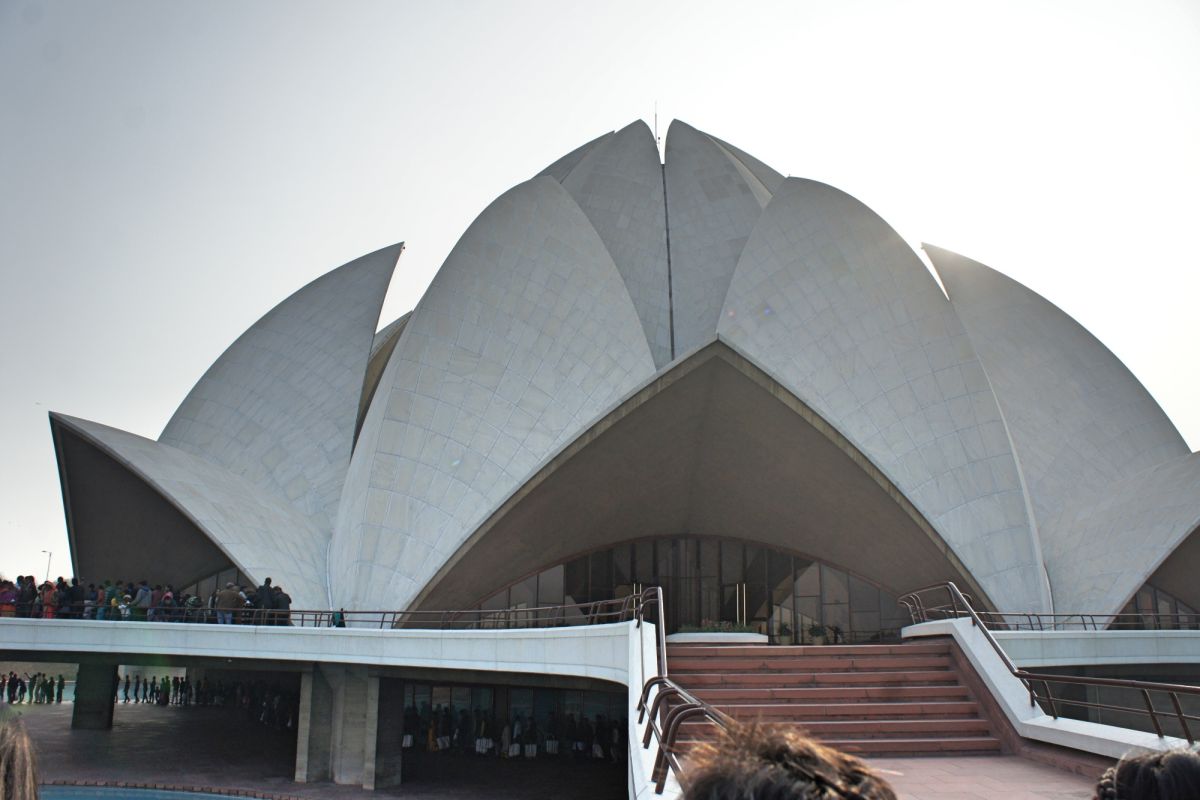 Я вижу сквозь дымку невероятный цветок - чудо инженерной мысли. Его гигантские белоснежные лепестки словно вот-вот раскроются навстречу солнцу нового дня, они почти сомкнуты, но в чуть разомкнувшийся вершине угадывается готовность приоткрыть великую тайну. А от самой цветоножки тянется бесконечной лианой очередь, собравшая как мне кажется пол Индостана чающих к этой тайне приобщиться.