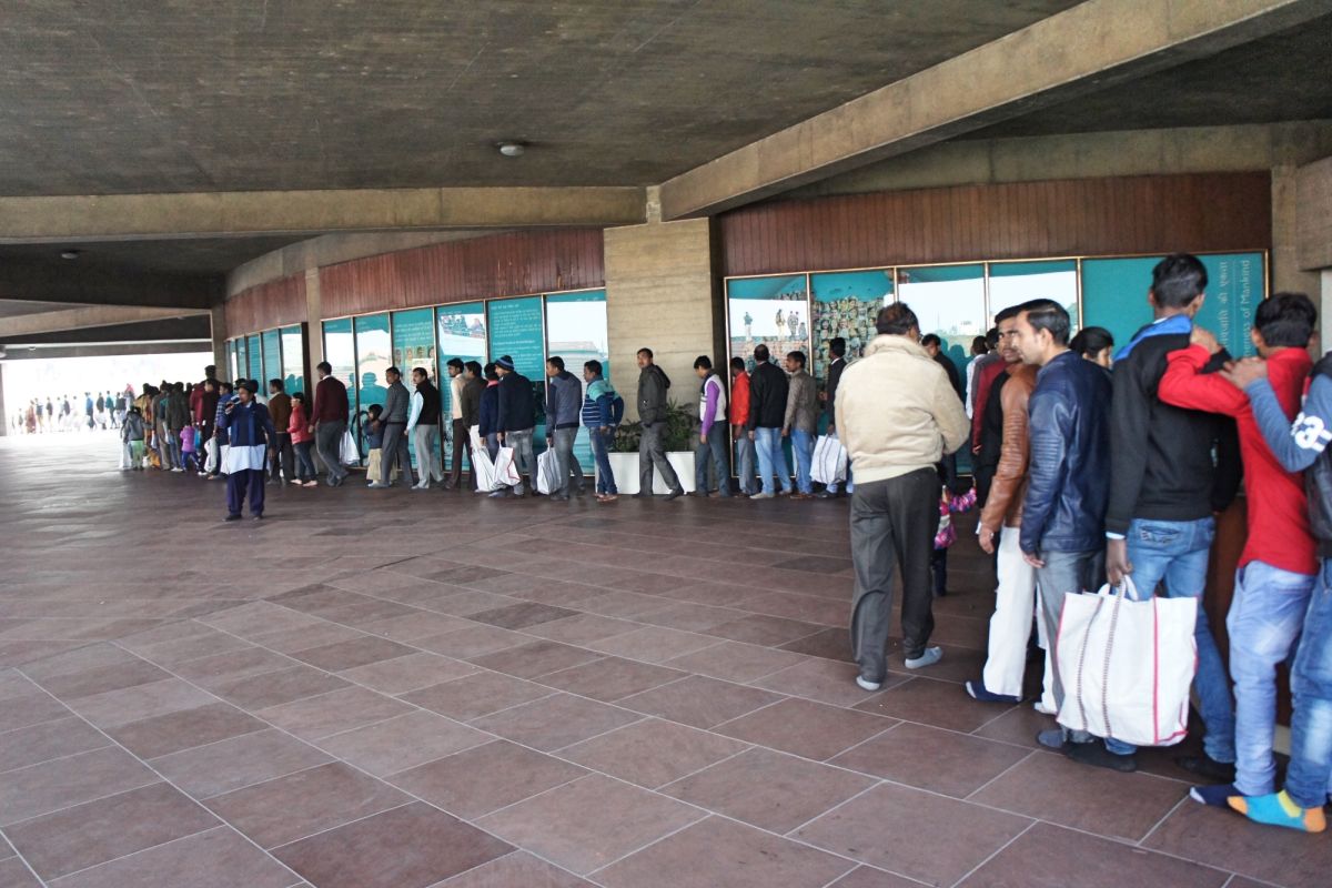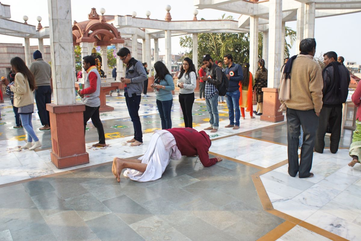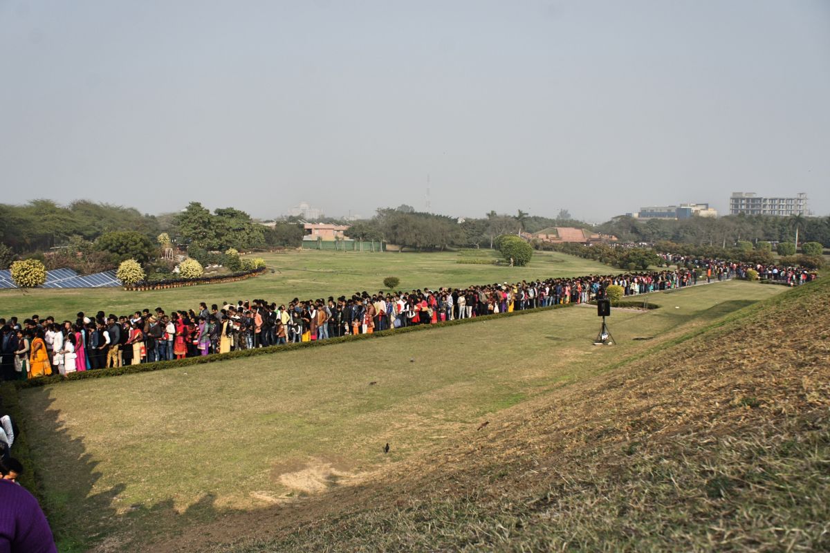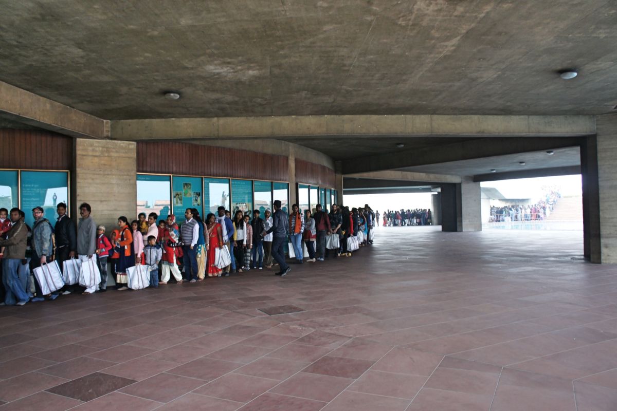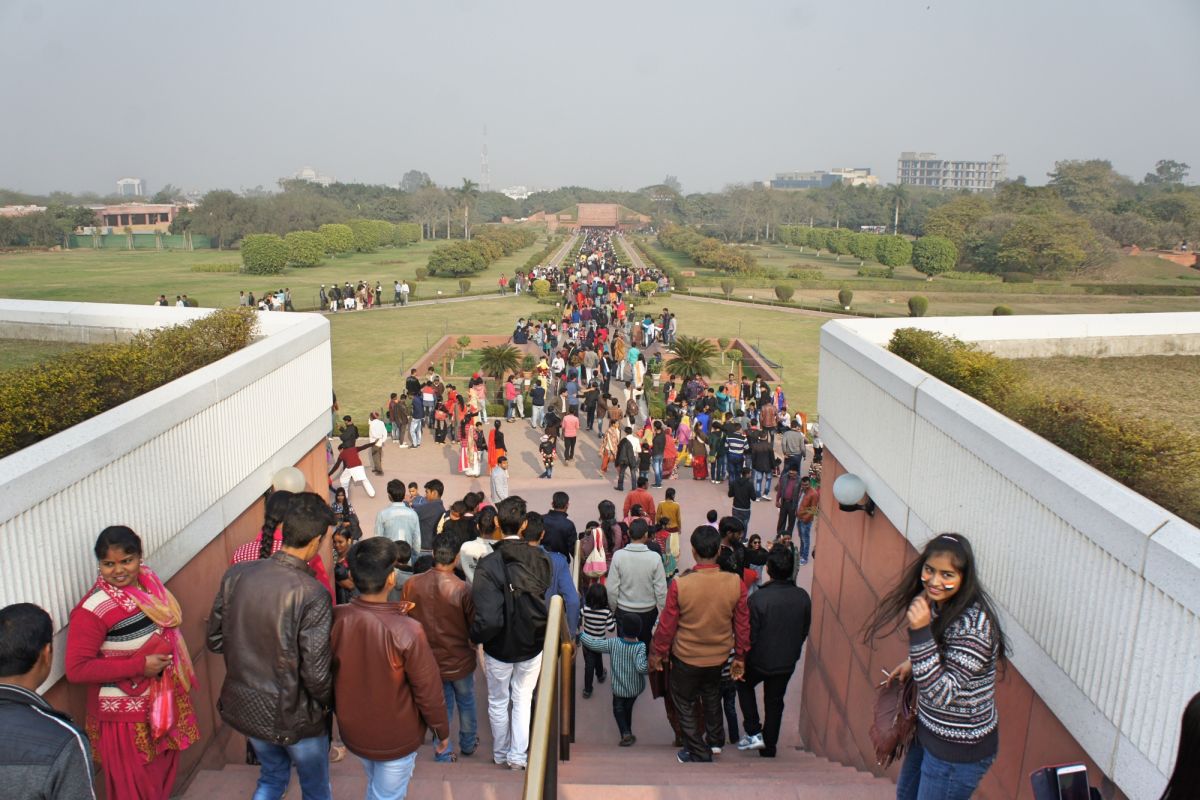 Я вижу сквозь дымку невероятный цветок - чудо инженерной мысли. Его гигантские белоснежные лепестки словно вот-вот раскроются навстречу солнцу нового дня, они почти сомкнуты, но в чуть разомкнувшийся вершине угадывается готовность приоткрыть великую тайну. А от самой цветоножки тянется бесконечной лианой очередь, собравшая как мне кажется пол Индостана чающих к этой тайне приобщиться.