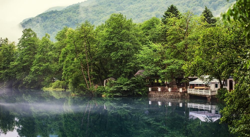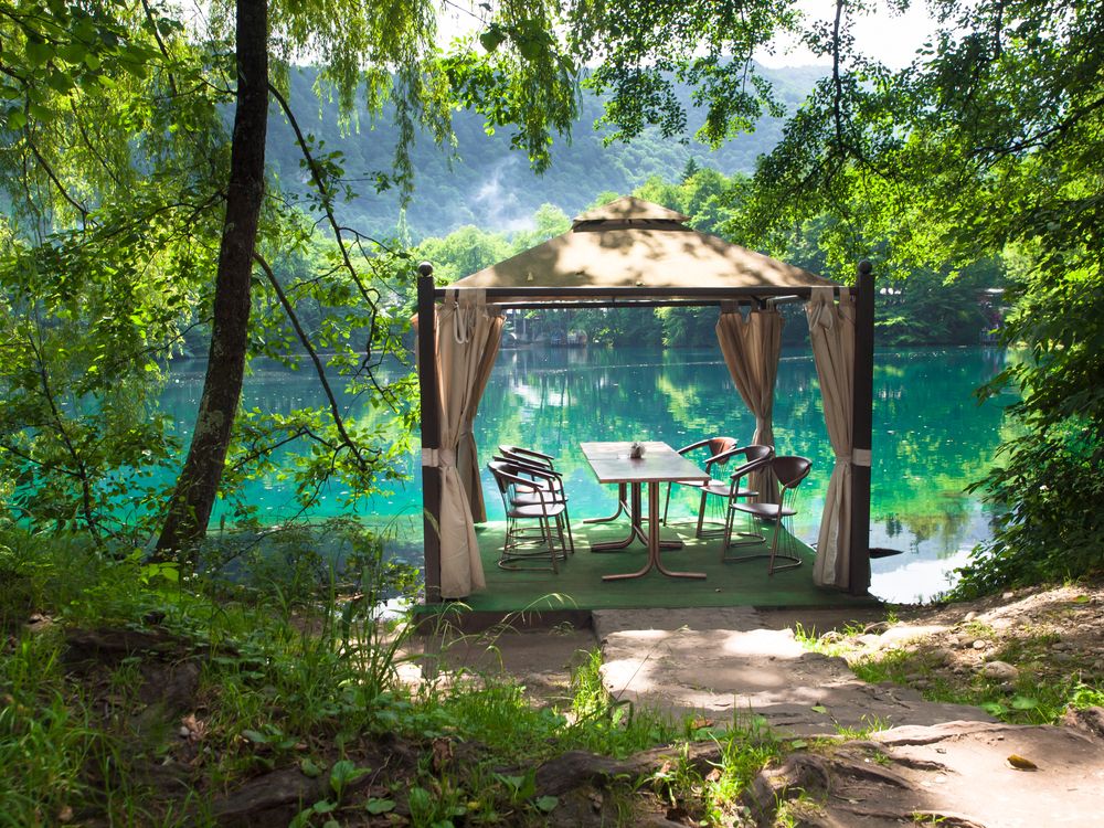 Недалеко от столицы республики находится еще одно чудо природы – целая сеть карстовых озер. Каждое из них уникально, но одно, нижнее, представляет для туристов особый интерес. Это озеро расположилось среди скалистых хребтов.