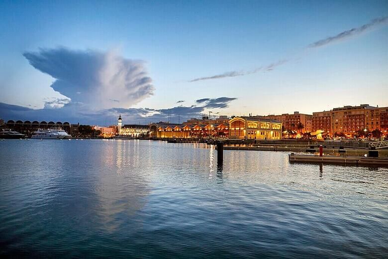 Лучшее место для наблюдения за закатом солнца над этим впечатляющим архитектурным комплексом — с моста Ассут-де-л'Ор, также известного как «эль-хамонеро» («Держатель ветчины») из-за его формы. Один из трех мостов, спроектированных валенсийским архитектором Сантьяго Калатравой, он расположен между Музеем науки и Агорой и предлагает возвышенный вид на влияние сумерек на здания.