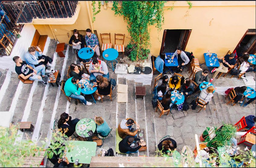 Совершите десятиминутную живописную прогулку по улице Мнисиклеус в Плаке и отдохните на лестнице с кафе, которые запечатлены в бесчисленных моментах в Instagram. Успокойтесь с кофе, молочным коктейлем, холодным пивом или бокалом домашнего вина (в Греции напитки обычно подаются с бесплатными закусками, такими как оливки, печенье или маленькие кусочки кекса).