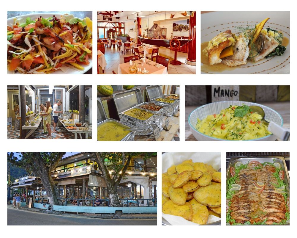 Гости могут насладиться восхитительными блюдами, приготовленными из местных продуктов, доступных в меню «A La Carte», которое включает различные креольские деликатесы, такие как местное куриное карри, стейк из тунца на гриле, сливочные креветки с чесноком и копченую рыбу среди других вкусных блюд.