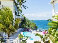 Отель Le Rocher (Ле Рошер) расположен на скале, рядом с пирсом, ведущим в Каледонию. Прекрасно подходит для семейного отдыха.