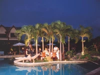 Бассейн открытый 2 уровневый с водопадом, пещерами в окружении тропического сада