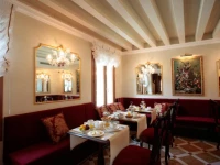 Здание отеля - венецианский особняк XVIII века - выходит на Гранд канал. В номерах мебель с позолотой, муранское стекло, картины итальянских художников, отделанные мрамором ванные комнаты.