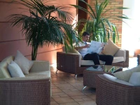 Гости могут отдохнуть после напряженного дня на террасе отеля или в уютном баре.