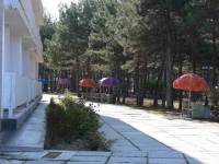 Пансионат Искра расположен в западной части Крымского полуострова, на берегу Каламитского залива Черного моря в поселке Песчаное Бахчисарайского района, в 55 км от города Симферополя и в 52 км от аэропорта. Пансионат находится в экологически чистом регионе Крыма, в сосновом парке.