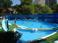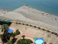 Собственный галечный пляж пансионата "Олимпийский-Дагомыс", оборудованный кабинками для переодевания, душевыми кабинами, питьевыми фонтанами. Пляж расположен в 400 метрах, для гостей организована регулярная доставка транспортом пансионата — 3 минуты езды и вы на море!