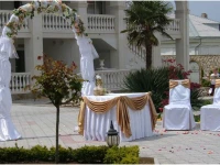 Отель Апартаменты Херсонес (Apartamenty Hersones) - элитный гостиничный комплекс, который расположен в одном из самых престижных и живописных районов города Севастополя. Отель находится в центре города, в минуте ходьбы от историко-археологического заповедника Херсонес Таврический, в 3 км от центрального автовокзала и в 13 км от аэропорта Севастополя. Апартаменты Херсонес это роскошные номера у Черного моря, куда приятно пригласить гостей и по-настоящему отдохнуть на морском побережье. Духом античного Херсонеса пропитан каждый уголок отеля, на территории которого прекрасная парковая зона.