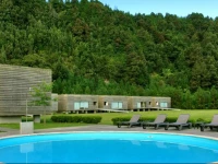 Furnas Lake Villas (Фурнас Лэйк Виллас) находится в крайне приятном месте, в самом центре острова Сан-Мигель. Зеленый ландшафт, окружающий курорт, позволит вам насладиться всеми прелестями отдыха на природе. Всего здесь десять кубических коттеджей авангардного вида. Они построены из местных пород дерева и камня, и стоят на сваях - точно так же на сваи здесь веками водружали амбары. К каждому из них ведет мостик, перекинутый через водоем. Внутри они оформлены в жизнерадостном современном ключе.