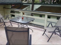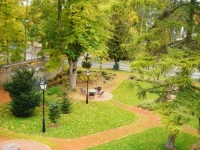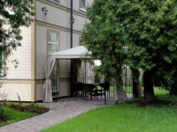 Отель имеет удобную, полностью закрытую территорию, на которой располагается стоянка для машин гостей и прекрасная зелёная зона с вековыми туями и соснами. А также к услугам гостей предлагаются кафе-бар с летней террасой, конференц-зал.