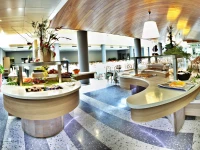 Food, drink and entertainment: The restaurant is air-conditioned and features breakfast and evening meal buffet style with show cooking and a choice of hot and cold meals. Vegetarian and Celiac options are offered. There is a bar area with snack service and evening entertainment on some nights. There is a TV lounge area