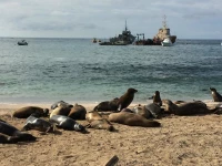 Ecuador, Puerto Baquerizo Moreno, Av. Alsacio Northia Frente a Playa man
