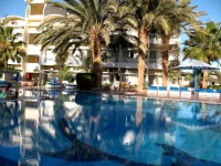 Отдыхали мы семьей в этом отели с 10.11.12 по 23.11.12.Для начала могу сказать ,что выбирали его наши друзья,а им советовали как всегда агенты.Друзья,меня подкупили только отзывы!Незнаю,где люди там нашли твердую 4-ку?!Три с минусом,если не два.3-КУ СТАВЛЮ ТОЛЬКО ЗА ТЕПЛЫЙ БАССЕЙН.Начну по порядку))Заселение было не долгим т.к в нужное время приехали,я дала 20$ и нам дали номер,далеко не такой как