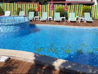 Были там в августе с ребенком. Замечательная гостиница! Нам всё понравилось. До моря рукой подать, пляж очень хороший - немноголюдный (в других местах в Болгарии с этим часто бывают проблемы), но чистый и оборудованный (лежаки, зонтики, кафе-дискотека). Вода очень чистая, вход в море пологий (для ребенка в самый раз)...