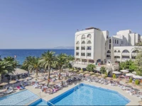 Отель Imbat 4* расположен в 75 км от аэропорта г. Измира, в 3 км от центра г. Кушадасы, на самом берегу моря. До античного города Эфеса 18 км. Отель состоит из двух 5-этажных, трех 4-этажных и двух 3-этажных основных зданий (70% номеров с видом на море или на бассейн).