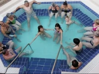 Уникальная для Европы, харканьская лечебная вода, средней температурой 62 °C, пробивается на поверхность с глубины 50-70 метров. Содержание минеральных элементов на литр воды превышает 1.000 мг. С лечебной точки зрения, самым выдающимся ее минеральным компонентом является двухвалентное сернистое соединение, сернистый карбонил (COS), который находится в воде в виде находящегося под давлением растворенного газа. В вытекающей воде, освободившись от давления, он сразу начинает расщепляться, преобразовываясь в сероводородный газ с характерным запахом. В воде элементарную серу видно в форме мелких крупинок, которые легко можно заметить и в бассейне при боковом освещении. В 1 литре лечебной воды содержится примерно 12 мг сернистого карбонила, или сероокиси углерода. Кстати, это химическое соединение раньше не было известно, оно было открыто здесь в 1860 году, во время проведения химического анализа. Сернистый карбонил активно всасывается в организм, как через кожу, так и при вдыхании, – в 150 раз быстрее, по сравнению с четырехвалентным сернистым соединением (сульфат или сернокислая соль).