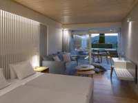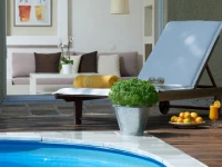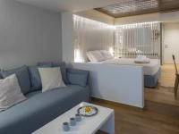 Все номера отеля Atrium отделаны натуральным камнем и деревом. Вы можете принимать солнечные ванны на собственном патио или расслабиться в частном бассейне или ванне с гидромассажем.