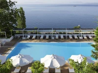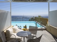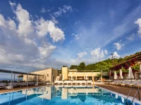 Отель Atrium сочетает в себе современную и традиционную архитектуру. Он построен в виде амфитеатра, в центре которого находится бассейн. Из окон всех номеров отеля и лаунджей открывается потрясающий вид на море.