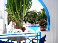 Отель Pension George (Пенсион Джордж) 3* расположен в центре острова, в 15 минутах ходьбы от Фиры. Отель находится в 10 минутах езды на автобусе от пляжа, в деревне Картерадос, где есть множество баров, магазинов, таверн и мини-маркетов.
