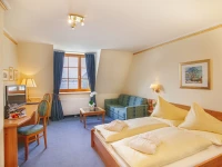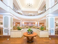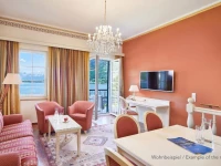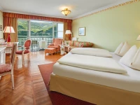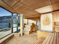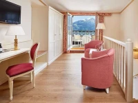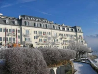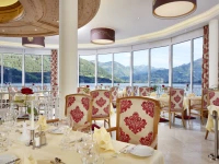Потрясающая панорама из номеров с видом на озеро. Достойная, но немного скромная кухня. Антураж скорее классический, а не «горнолыжный». Недалеко от отеля проложена железная дорога.