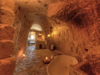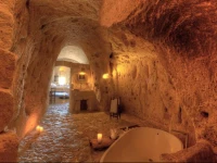 Номера уникального отеля находятся в оригинальных больших пещерах, ресторан занимает здание старинной церкви XIII века.