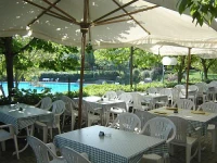 Ресторан отеля открыт на обед и ужин и специализируется на блюдах региональной кухни и пицце.