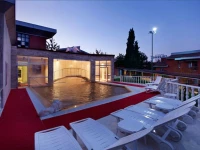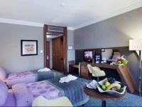 На территории есть парковка, ресторан, несколько баров, конференц-зал, несколько бассейнов, в том числе и с термальной водой, а также оздоровительные и спа-центры, фитнес-зал и многое другое.