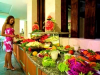 1. еда на 5+, было все - кальмары, креветки, крабы, телячий язык, тунец, различные фаршированные помидоры, перцы, картофель, вообщем все-все даже суши, роллы, утром для детей всевозможные каши, вино красное и белое - отменное бутылочное (не бочковое). Я такой стол нигде