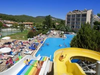 Наверное Кервансарай был когда-то приятным отелем. Сейчас никакая природа не может компенсировать недостатки , связанные с большим количеством отдыхающих. В столовой ( по другому не назовешь ) не хватало столиков , чистых скатертей, посуды. В бассейне мы купались с 7-30 до 9 утром и с 18 до 19 вечером. В другое время это был лягушатник. С горок кататься ножно было только с риском для жизни ( за то