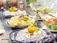 Отель работает по системе Полупансион: завтрак и ужин – шведский стол; напитки за доп.плату. К услугам гостей несколько ресторанов: основной ресторан для завтрака и ужина с открытой террасой и местами для некурящих, "Happy Bar & Grill", "Captain Cook" (рыбный), Мексиканский ресторан "Mamacitas", Mc Donald’s, пиццерия; 2 бара (бар у бассейна и лобби-бар); "Café del mar".