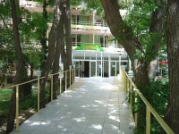 Номер, как номер, мебель нестарая. Но светильники висели, розетки поломаны, телефон, просто аппарат, без всяких проводов, для вида, что он есть. Мы проживали сначала в одном номере, потом в другом. Если хотите ночью тишины, то берите четные номера. В нечетных музыка с рецепшена, крики и прочие прелести ночного отдыха будут с вами. Для детей стоит одна поломанная ужасная горка, есть секция в бассей