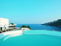 Отель Grecotel Myconos Blu Grecotel 5* (Миконос Блу Грекотель 5*) находится на прекрасном песчаном пляже Псару в 3,5 км от города Миконос. Все вокруг удивительно яркое: лазурное небо, ярко бирюзовое море, удивительно спокойное в этой бухте, белоснежные яхты на горизонте, перламутровый белый песок и коричневые горы вокруг. Из окон его номеров открывается великолепный панорамный вид на пляж залива Псару. Роскошный курортный отель внешне украшен в эгейском архитектурном стиле, внутри имеет современную отделку. Отель расположен в 15 минутах от аэропорта Миконоса. Каждый уголок этого удивительного отеля Myconos Blu Grecotel 5* необычен, неповторим, красив и стилен, что характерно и для Миконоса в целом. Если Вы собираетесь в романтическое путешествие или просто хотите внести немного романтики в свою жизнь – лучшего места для отдыха Вам не найти.