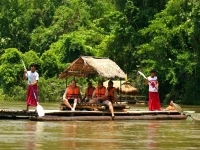 Отличный красивый отель в джунглях Тайланда. Интересное шоу вечером. Сплав по реке Квай запоминается навсегда! Первое, что надо сделать в Тайланде - это побывать на реке Квай. Не были на Квай - не были в Тайланде ;) Это не только мое мнение, но и самих тайцев и многих отдыхающих. По дороге на реку Квай из Паттайи вы посетите - настоящий тайский дом, фабрику дерева, слоновью деревню, плавучи