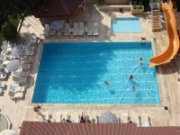 Небольшой приятный отель работающий по системе Все Включено. Распожен в городе Алания, через дорогу от пляжа.