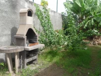 Сад: бассейн (3,5 х 3,5 м - одобренный барьер безопасности) в зеленой, цветущей обстановке, местный газон, фруктовые деревья, шезлонги, барбекю.