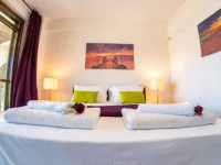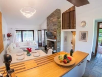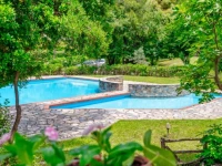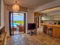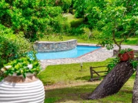 Есть обеденная зона и кухня, оборудованная всем необходимым. В числе удобств телевизор с плоским экраном, кондиционер, сад и бассейн, откуда открывается прекрасный вид на природу.