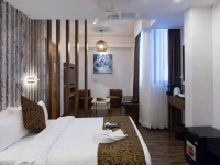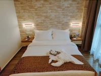 Номер уютно обставлен и оснащён необходимым, чтобы отдохнуть после долгого и насыщенного дня. Имеются душ, телевизор, халат и тапочки. Оснащение зависит от выбранной категории номера.