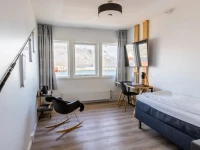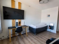Номер уютно обставлен и оснащён необходимым, чтобы отдохнуть после долгого и насыщенного дня. Имеются телевизор. Оснащение зависит от выбранной категории номера.