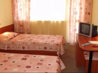 1. Кровати 2 шт, с 2-мя совмещенными матрасами (без общего покрывала или иного метода плотной стыковки). Матрасы в одной комнате пружинные, во второй беспружинные. Пружины ощутимы даже при легком нажатии, т.к. обивка тряпочная, без прослойки жесткого материала типа кокоса, совершенно дешевый вариант матраса, который был нормой этак в середине 20-