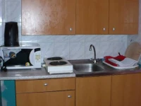 Общая кухня, оборудованная посудой, микроволновой печью и электрическим чайником