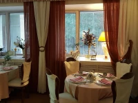 В кафе-ресторане "Аристократ" отеля "Геолог" в течение всего дня подают разнообразные блюда, в том числе завтрак "шведский стол". Также производится обслуживание номеров.